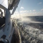 Ostatniej nocy morze ponownie przypomniało, że żadnych warunków lekceważyć nie wolno. Podczas świtówki (wachty od 0400-0800) doszło do niekontrolowanego zwrotu przez rufę. Czując charakterystyczne przechylanie się jachtu na niewłaściwą burtę natychmiast wyskoczyłem na pokład. Wiał słaby wiatr, który nagle zmienił kierunek. Sternik nie zareagował wystarczająco szybko, ale dobrze napięty kontraszot talii grota zapobiegł przeleceniu bomu na przeciwną burtę. Prawie nie dało się odczuć tego niebezpiecznego manewru. Po krótkiej chwili jacht wrócił do poprzedniego halsu, a bom z impetem naprężył lekko wyluzowaną talię. Tym razem obyło się bez uszkodzenia takielunku, ale taka sytuacja może skutkować poważnymi konsekwencjami. Katharsis II wybaczyła chwilę nieuwagi. Rejs trwa…